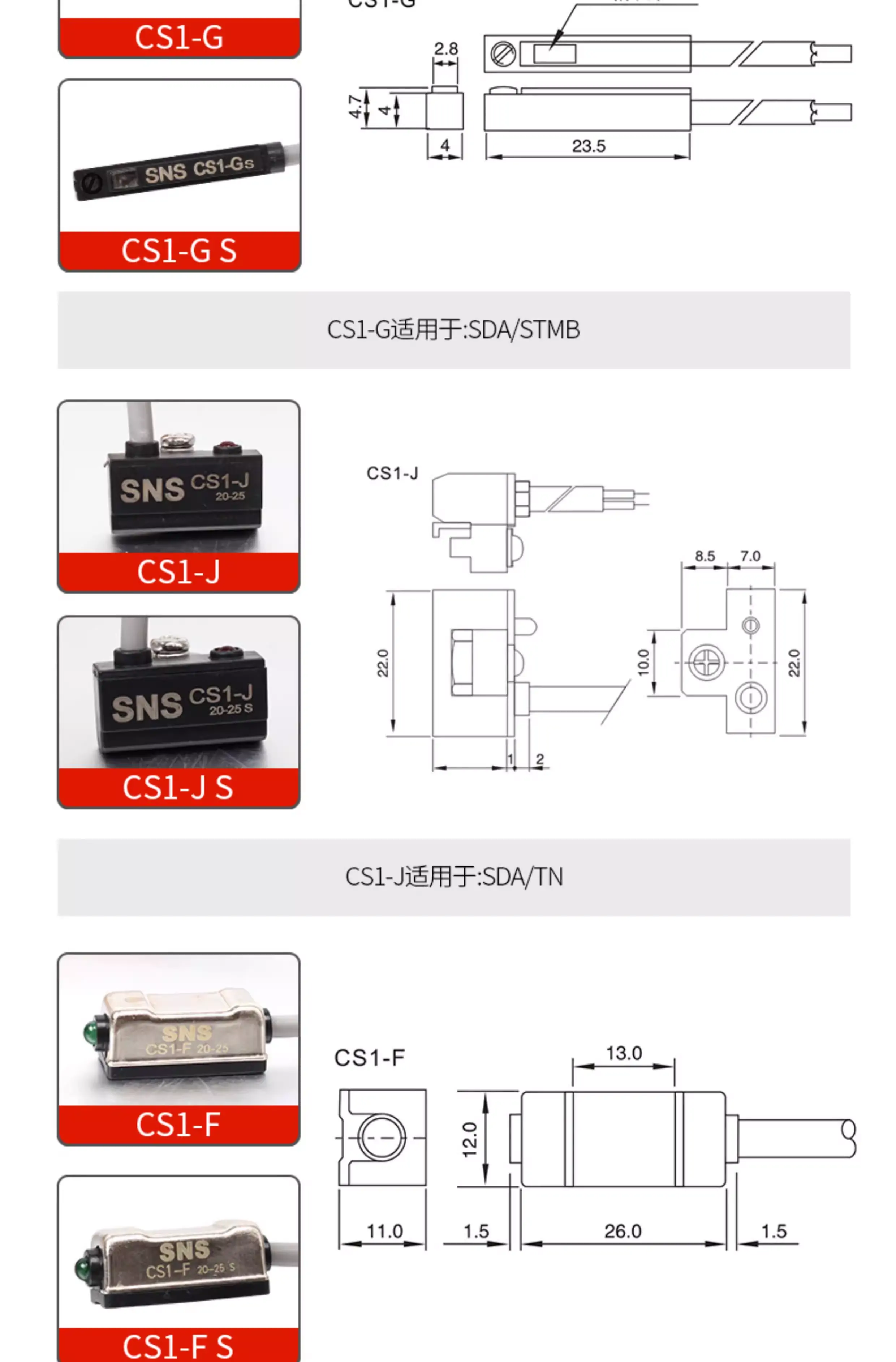 SNS磁性感應器線開關CS1/D-F/U/S/J/G/M/Z.A73/54/93氣缸配件