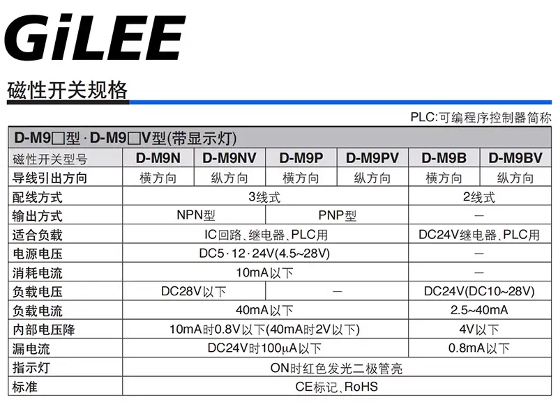 GILEE氣缸位置感應磁性開關傳感器亞德客型CMSG/E/H/J電子無觸點