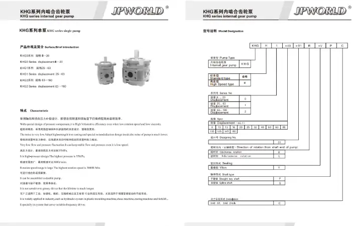 JPWORLD沃特KHG2-80-01R-VPC齒輪泵液壓125/100/160/63油泵KHG1