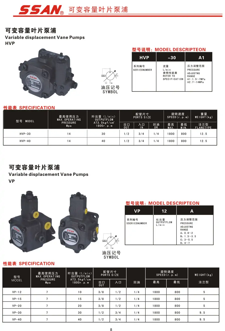 SSAN葉片泵VPE-F20D 液壓油泵VPEA-F20D-X-10 VP-20D 齒輪泵