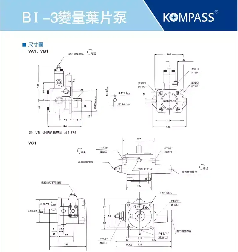 KOMPASS康百世油泵高壓葉片泵PV2R1-6 10 12 14 17 19 23 25 28 31-F1R